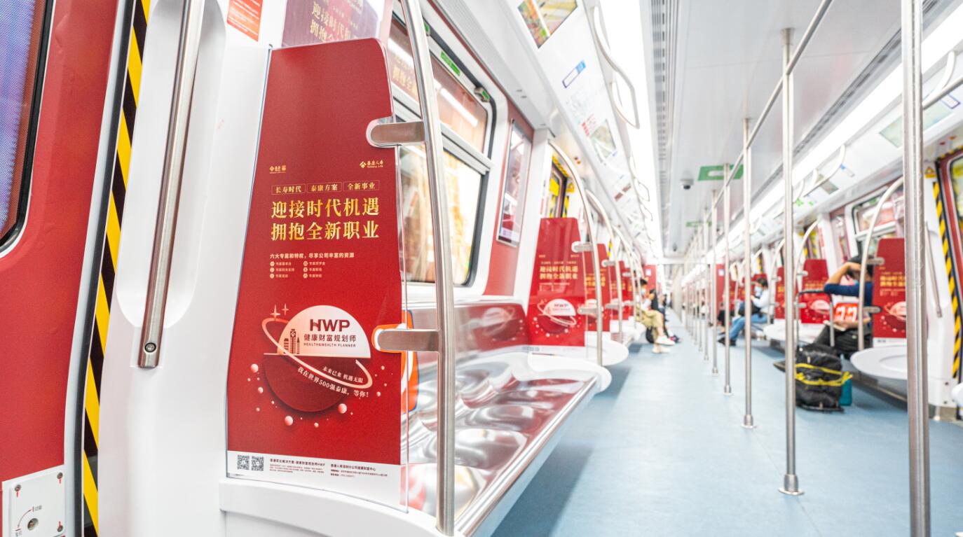 除招募主题专列地铁外,燕南站、竹子林站、华侨城站等福田区核心站点的6块灯箱广告也全部用来投放健康财富规划师(HWP)招募广告,预计每天将有数十万乘客与6块灯箱广告亲切相对。