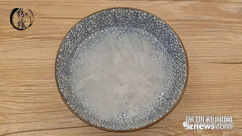 经过3~5小时的浸泡后,燕窝已经完全泡开。此时用一把小镊子,将泡发出的细碎的燕毛等杂质挑出来,清洗干净泡开的燕窝。