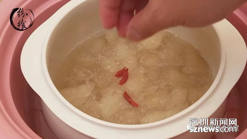 放入适量冰糖和枸杞,盖上炖盅盖子继续焖10分钟便可享用了。
