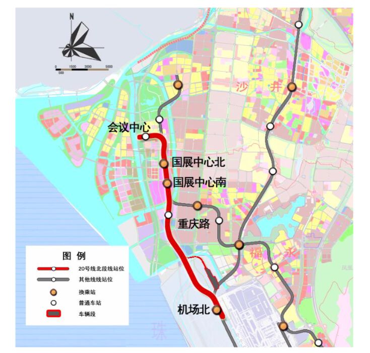 20号线北段主要服务国际会展中心、国际会议中心、科技馆等临湾片区大型公共设施,并为其提供与宝安机场 T4航站楼联系。