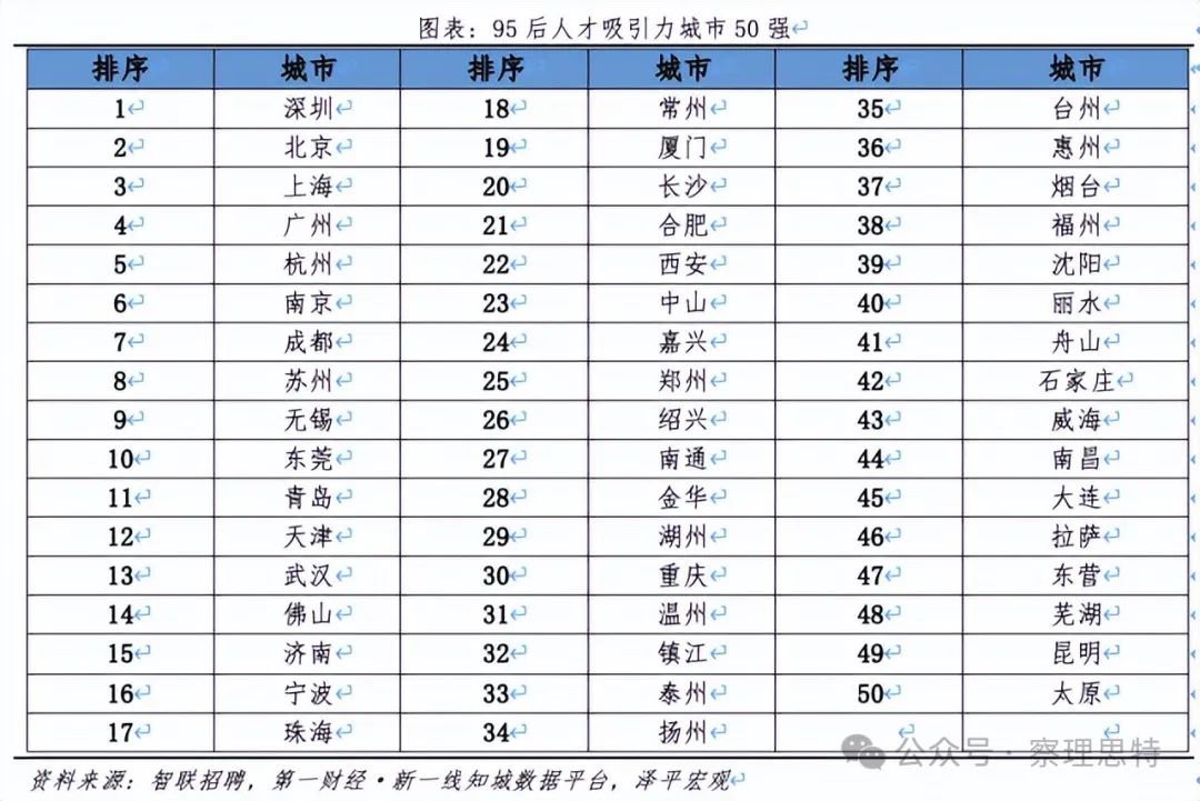 有资料显示,95后人才吸引力城市中,深圳排名第一,北京、上海、广州、杭州排在其后。深圳仍是年轻群体最想去的城市之一。