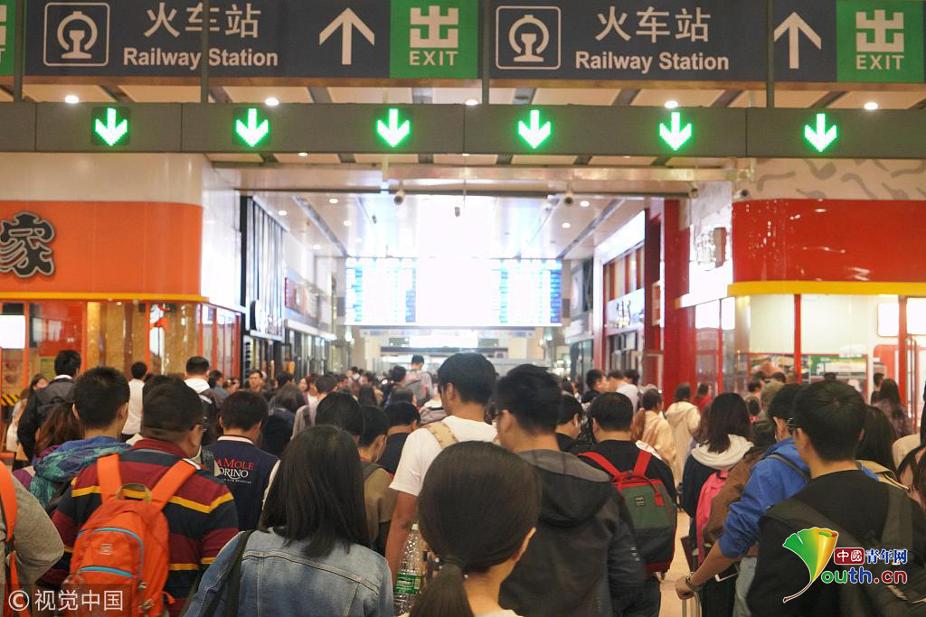 2018年10月1日,江苏淮安,国庆长假首日淮安汽车总站迎来客流高峰,出行的旅客络绎不绝。图片作者:张照久