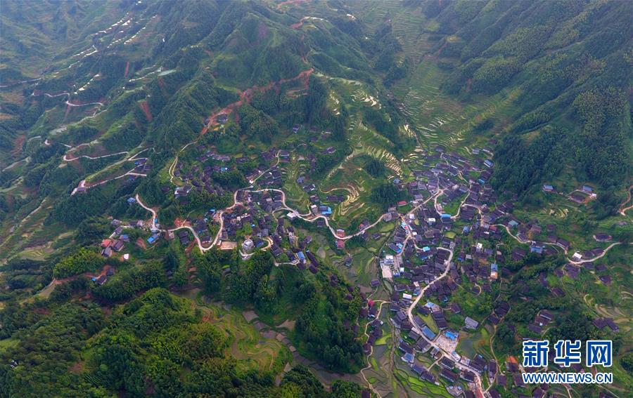 这是融水苗族自治县杆洞乡锦洞村的村屯公路(6月18日无人机拍摄)。新华社记者黄孝邦摄