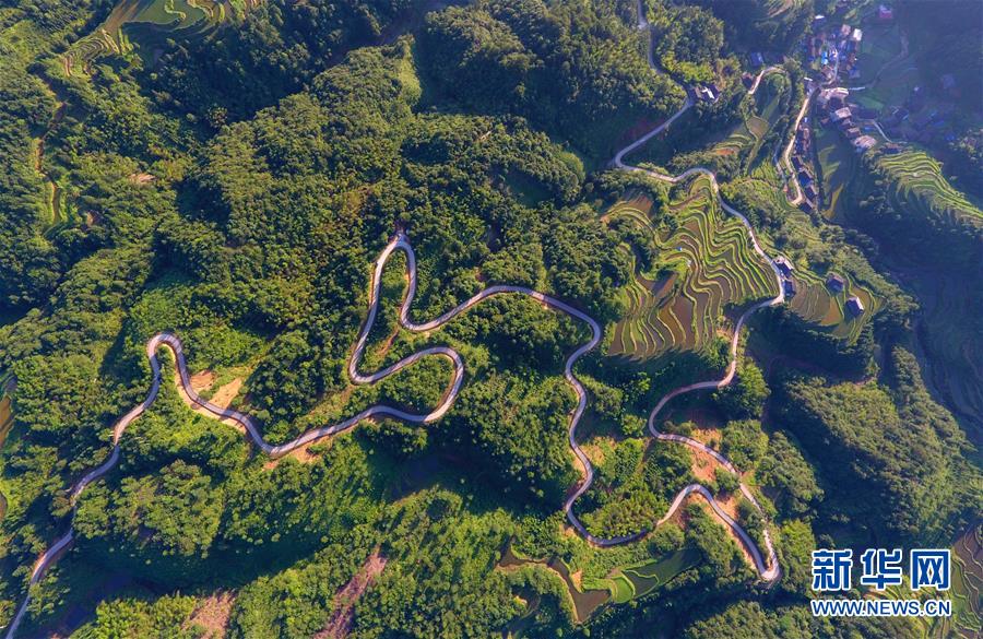 这是融水苗族自治县杆洞乡归江村的村屯公路(6月19日无人机拍摄)。新华社记者黄孝邦摄