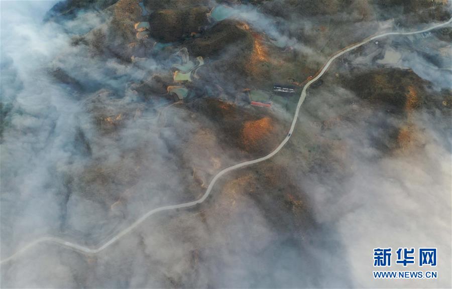 这是融水苗族自治县杆洞乡尧告村的村屯公路(1月5日无人机拍摄)。新华社记者黄孝邦摄