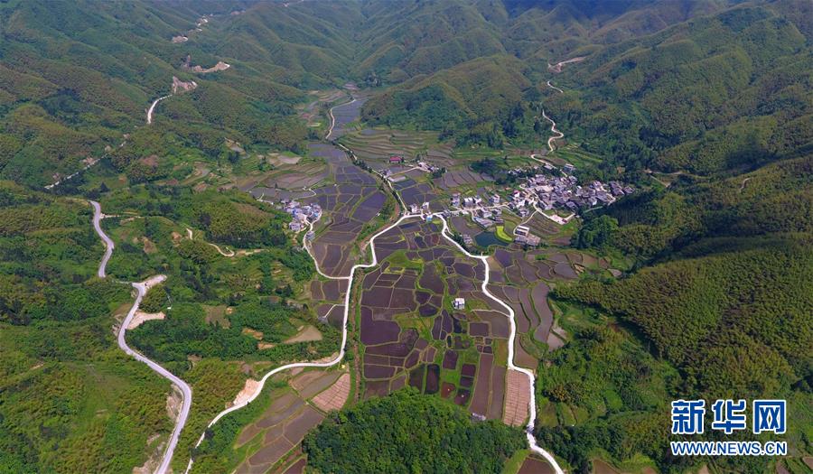 这是融水苗族自治县杆洞乡高强村的村屯公路(5月23日无人机拍摄)。新华社记者黄孝邦摄
