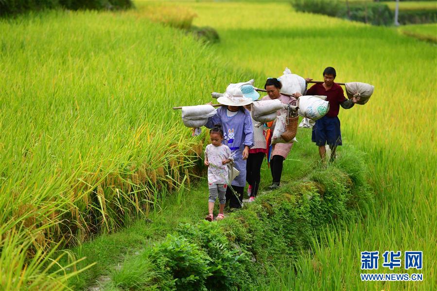 乌英苗寨秋收归来的人们(9月2日摄)。新华社记者黄孝邦摄