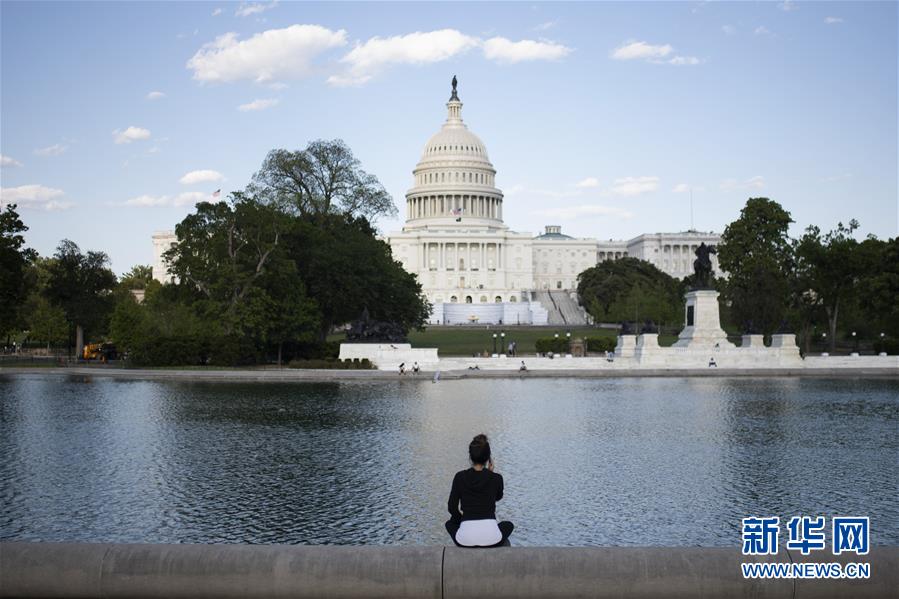 5月13日,一名女子美国华盛顿国会大厦附近休息。新华社记者刘杰摄