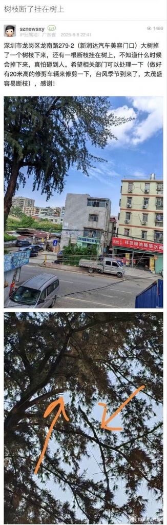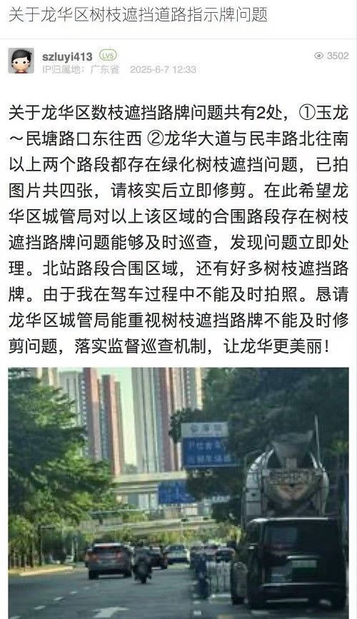 13. 帖文《关于龙华区树枝遮挡道路指示牌问题》