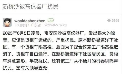 10. 帖文《新桥沙彼高仪器厂扰民》