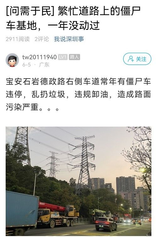 6. 帖文《举报西乡环卫车违停挡住人行道》