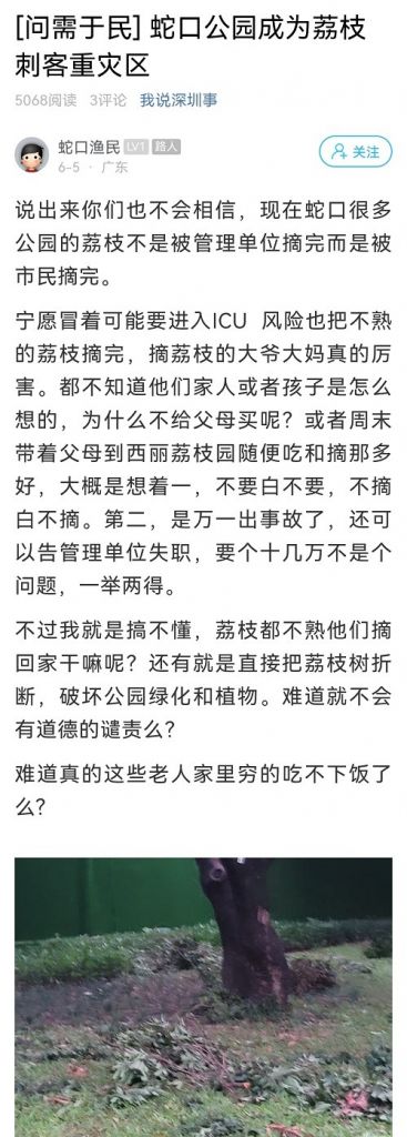 17. 帖文《蛇口公园成为荔枝刺客重灾区》