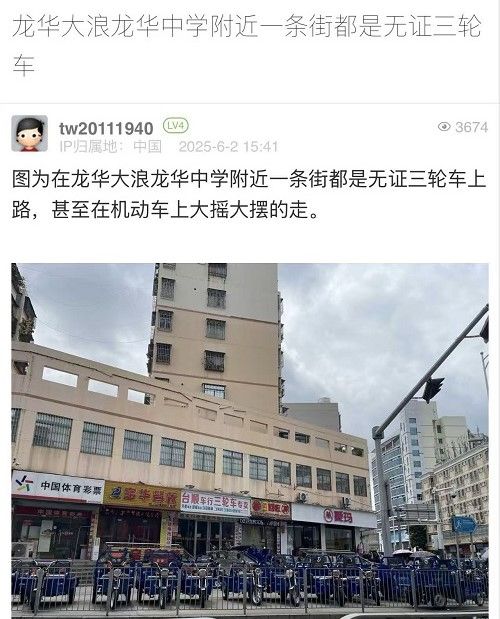 1. 帖文《龙华大浪龙华中学附近一条街都是无证三轮车》