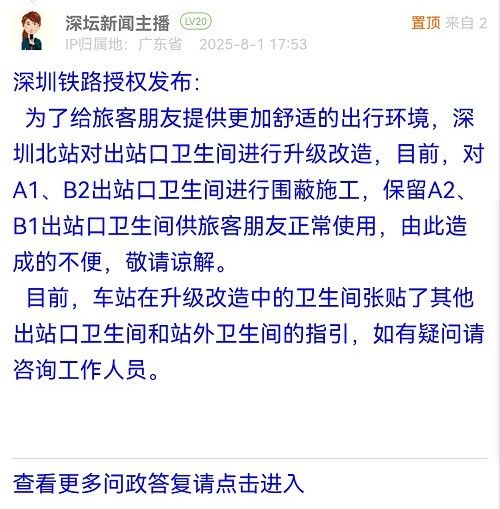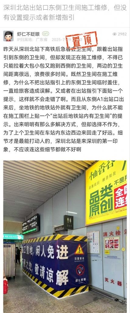 5. 帖文《深圳北站出站口东侧卫生间施工维修,但没有设置提示或者新增指引》