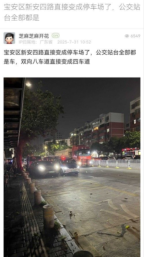 18. 帖文《宝安区新安四路直接变成停车场了,公交站台全部都是》