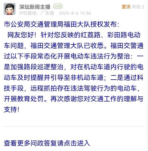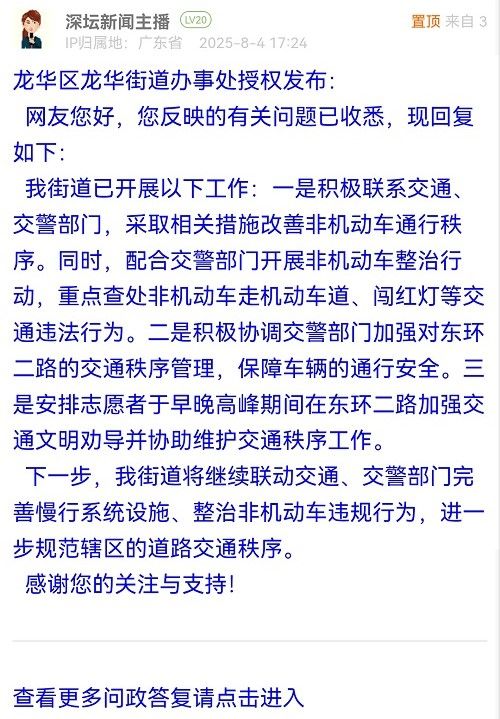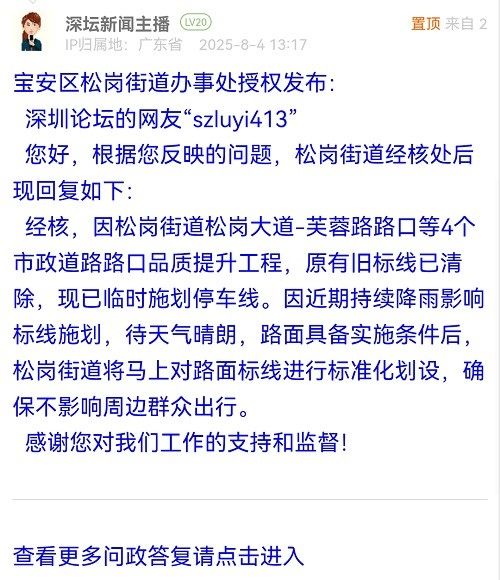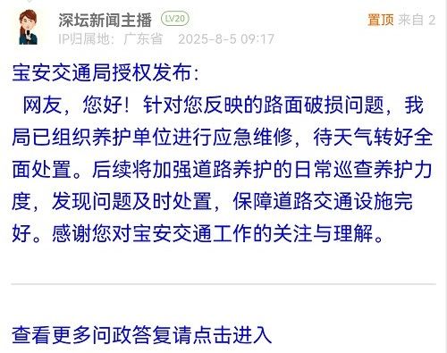各职能单位如需对网友反映的问题进行回应,可在深圳论坛注册官方账号并通过认证,回帖进行回应。
