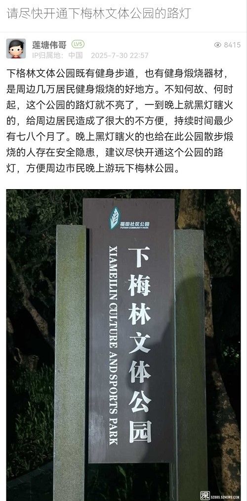 14. 帖文《请尽快开通下梅林文体公园的路灯》