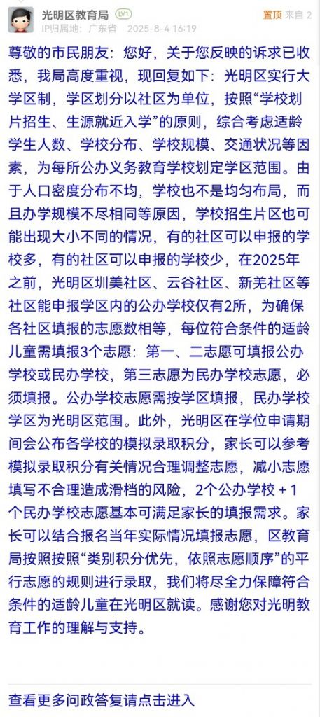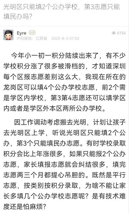 26. 帖文《光明区只能填2个公办学校,第3志愿只能填民办吗?》