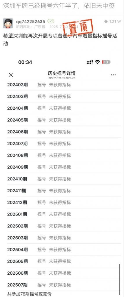 10. 帖文《深圳车牌已经摇号六年半了,依旧未中签》