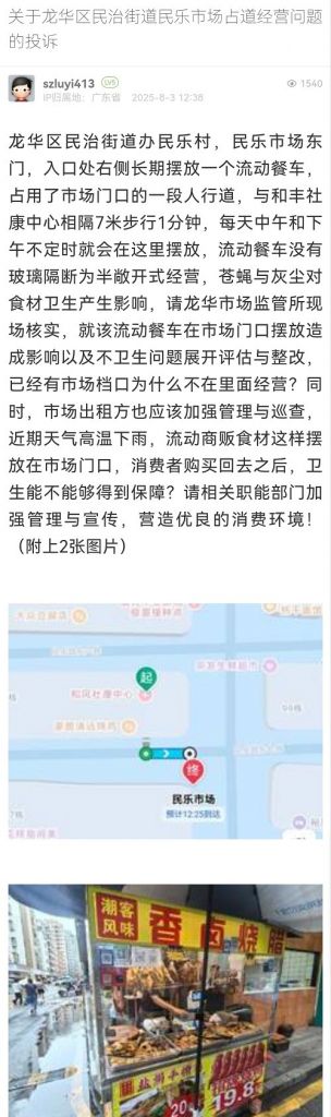 32. 帖文《关于龙华区民治街道民乐市场占道经营问题的投诉》