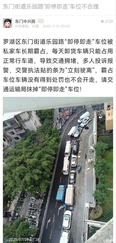 17. 帖文《东门街道乐园路"即停即走"车位不合理》
