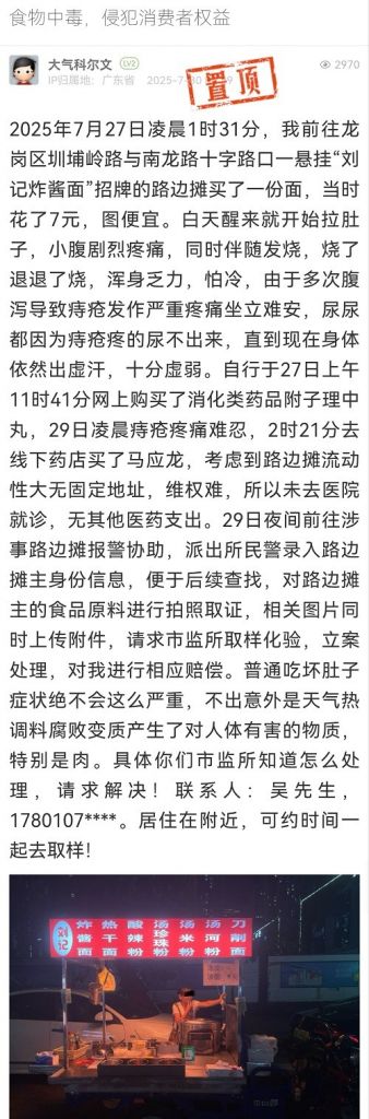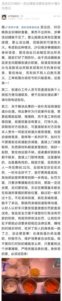 16. 帖文《龙岗区圳埔岭一流动摊贩消费者食物中毒补充情况》