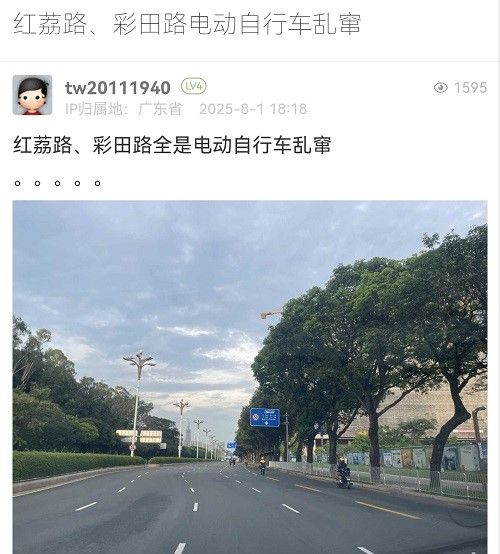 35. 帖文《红荔路、彩田路电动自行车乱窜》